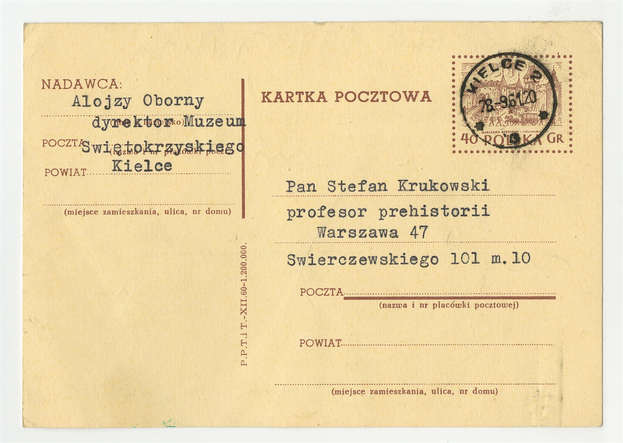 Kartka pocztowa od Alojzego Obornego do Stefana Krukowskiego z dnia 28 IX 1961 roku - awers
