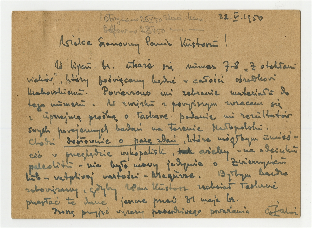 Kartka pocztowa od Andrzeja Żaki do Stefana Krukowskiego z dnia 22 V 1950 roku - rewers