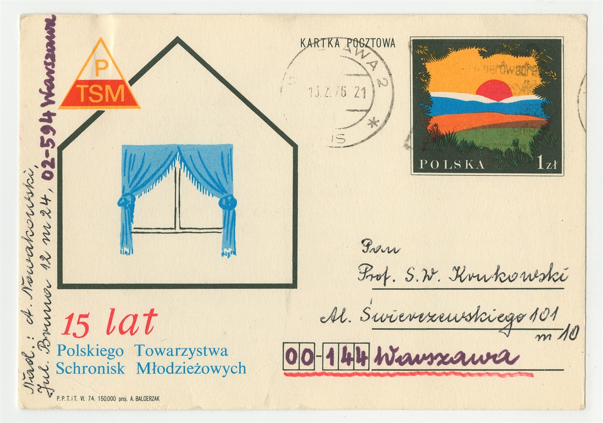 Kartka pocztowa od Antoniego Nowakowskiego do Stefana Krukowskiego z dn. 11 I [19]76 r. - awers