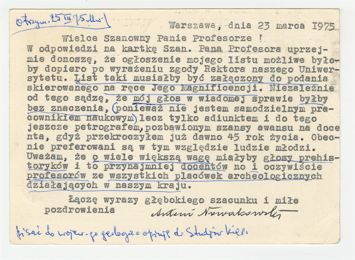 Kartka pocztowa od Antoniego Nowakowskiego do Stefana Krukowskiego z dnia 25 marca 1975 roku