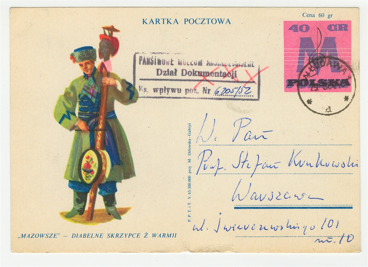 Kartka pocztowa od Haliny Mackiewicz do Stefana Krukowskiego z dnia 28 VIII [19]64 roku - awers