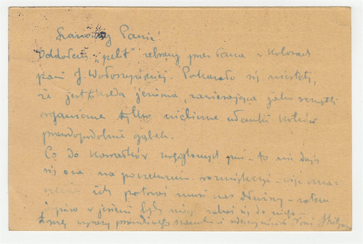 Kartka pocztowa od J Lilpopa do Stefana Krukowskiego z dnia 19 VI [19]26 roku - rewers