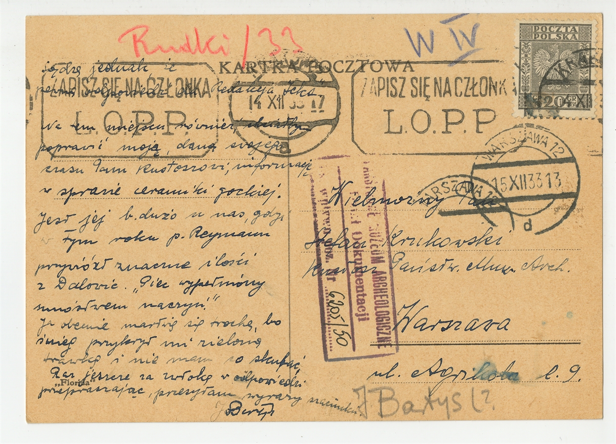 Kartka pocztowa od Jana Bartysa do Stefana Krukowskiego z dn. 15 XII [19]33 r. - awers