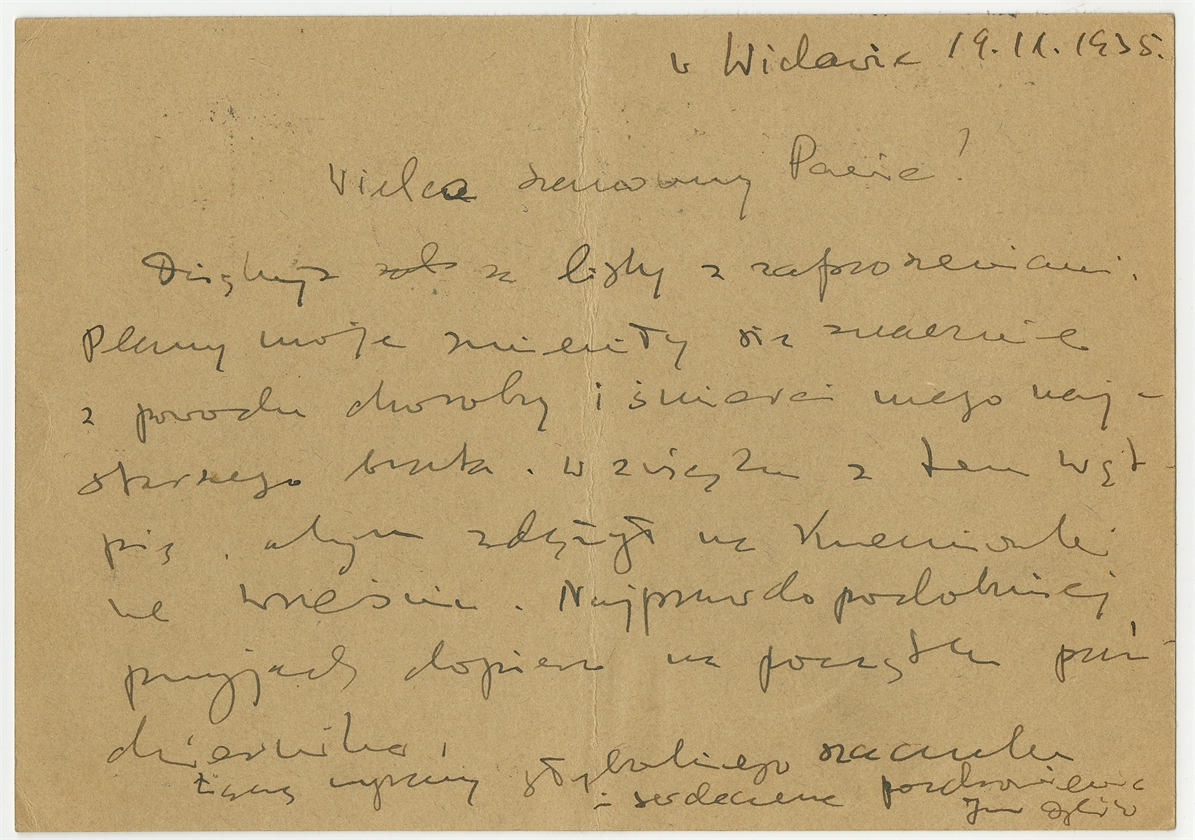 Kartka pocztowa od Jana Dylika do Stefana Krukowskiego z dn. 19 XI 1935 -rewers