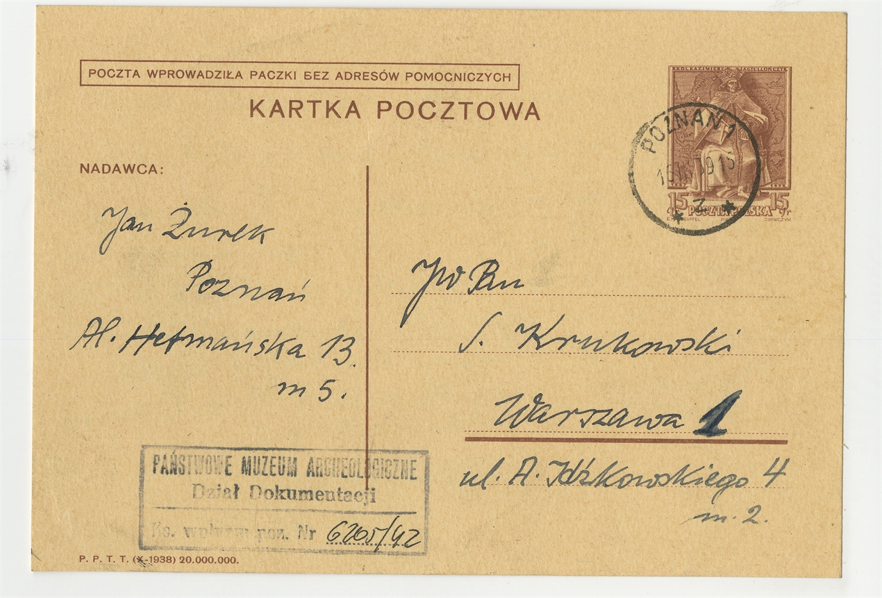 Kartka pocztowa od Jana Żurka do Stefana Krukowskiego z dnia 16 III [19]39 roku - awers