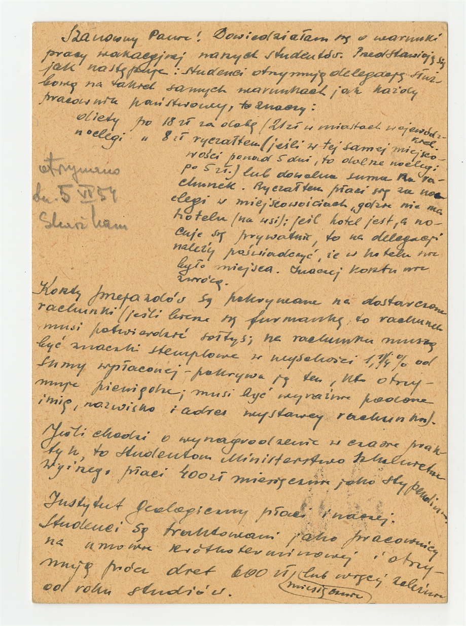 Kartka pocztowa od K. Straszewskiej do Stefana Krukowskiego z dnia 4.6.[19]54 roku - rewers