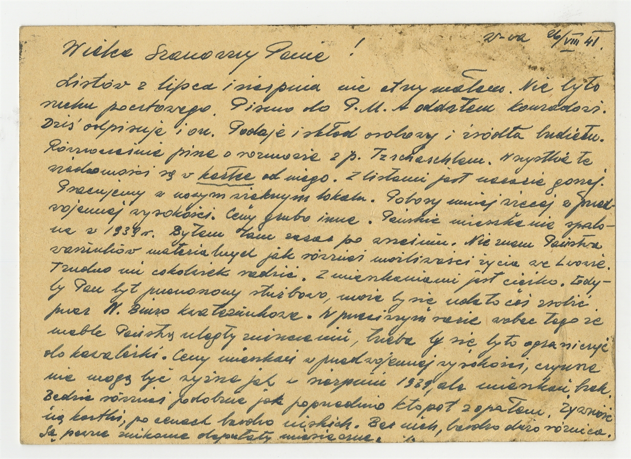 Kartka pocztowa od Kazimierza Salewicza do Stefana Krukowskiego z dnia 26 VIII [19]41 roku - rewers