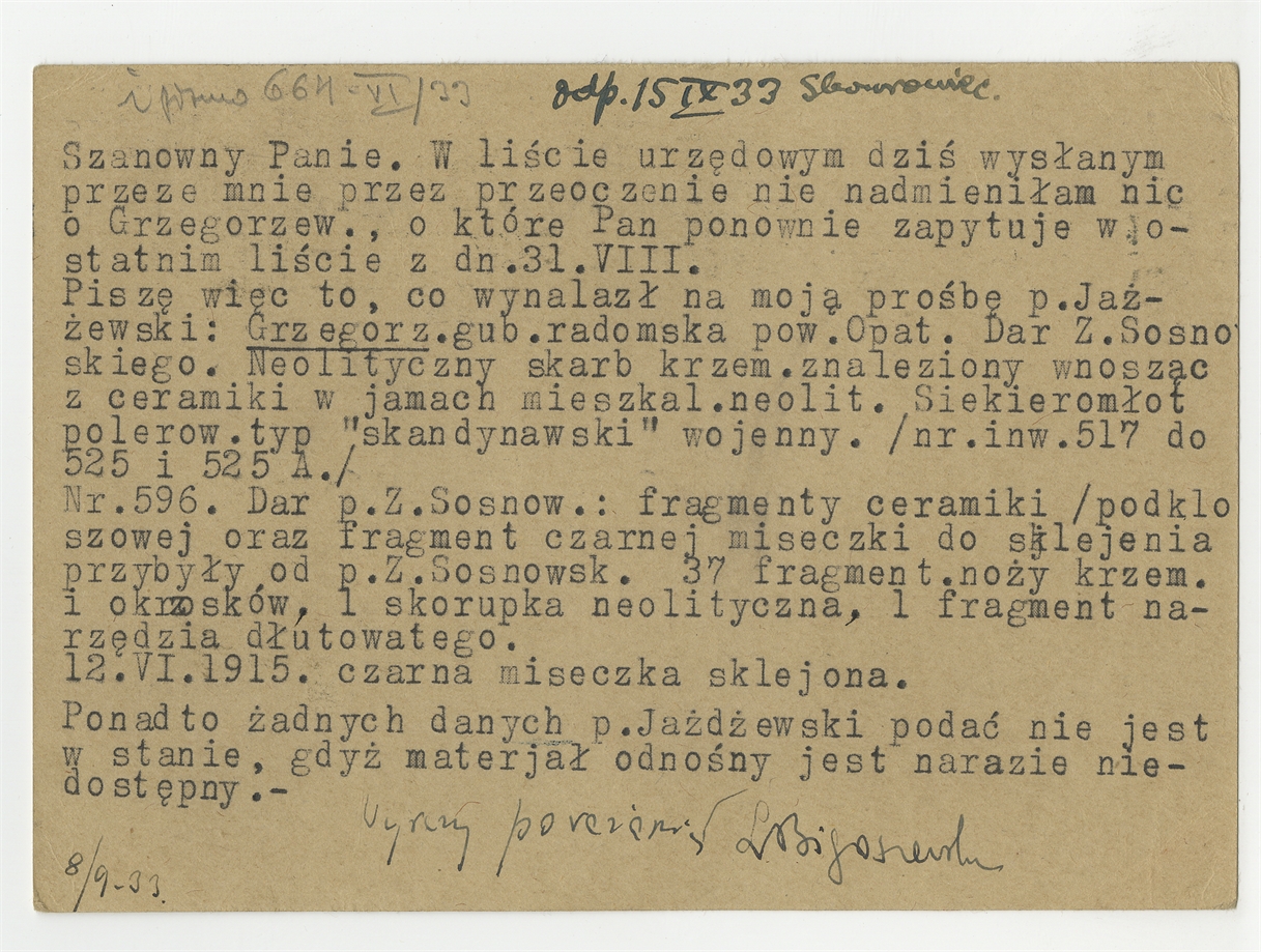 Kartka pocztowa od L. Bigoszewskiego do Stefana Krukowskiego z dnia 8.9.[19]33 roku - rewers