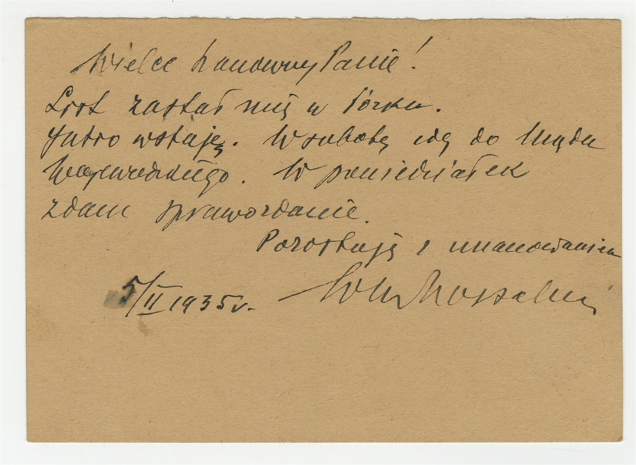 Element 2 - Kartka pocztowa od NN (podpis nieczytelny) z Kielc do Stefana Krukowskiego z dnia 5 II 1935 roku - rewers