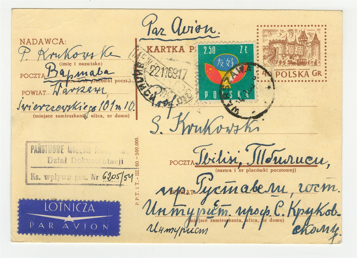Kartka pocztowa od Pelagii Krukowskiej do Stefana Krukowskiego z dnia 13 XI 1960 roku - awers