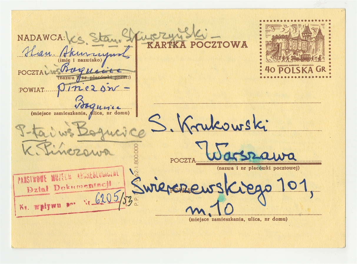 Kartka pocztowa od Stanisława Skurczyńskiego do Stefana Krukowskiego z dnia 12 V [19]64 roku - awers
