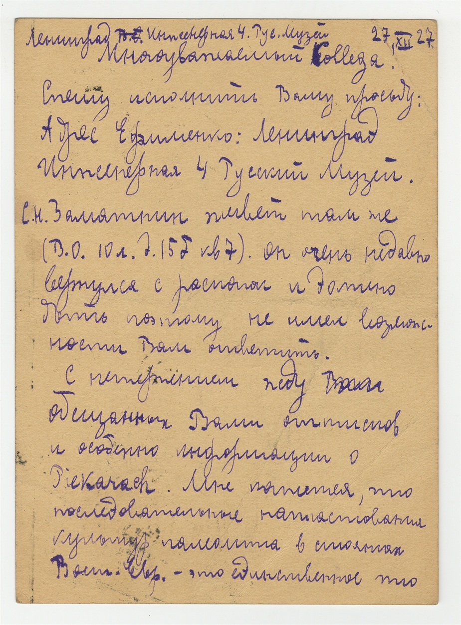 Kartka pocztowa od T. A. Boncz-Osmołowskij do Stefana Krukowskiego z dn. 27 XII [19]27 r. - rewers