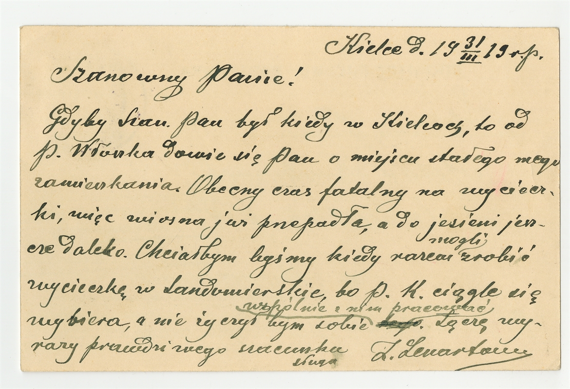 Kartka pocztowa od Z. Lenartowicza do Stefana Krukowskiego z dnia 31 III 1919 roku - rewers