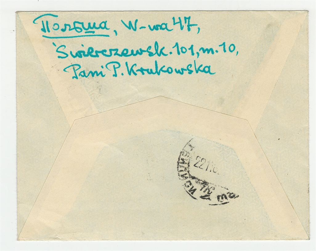 Koperta listu Pelagii Krukowskiej do Stefana Krukowskiego wysłanej 8.11.[19]60 roku zaadresowana ręką S. Krukowskiego - rewers