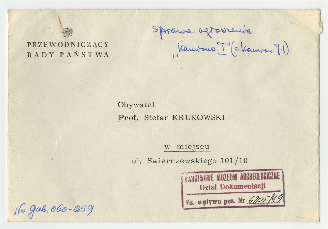 Koperta listu Przewodniczącego Rady Państwa do Stefana Krukowskiego - awers