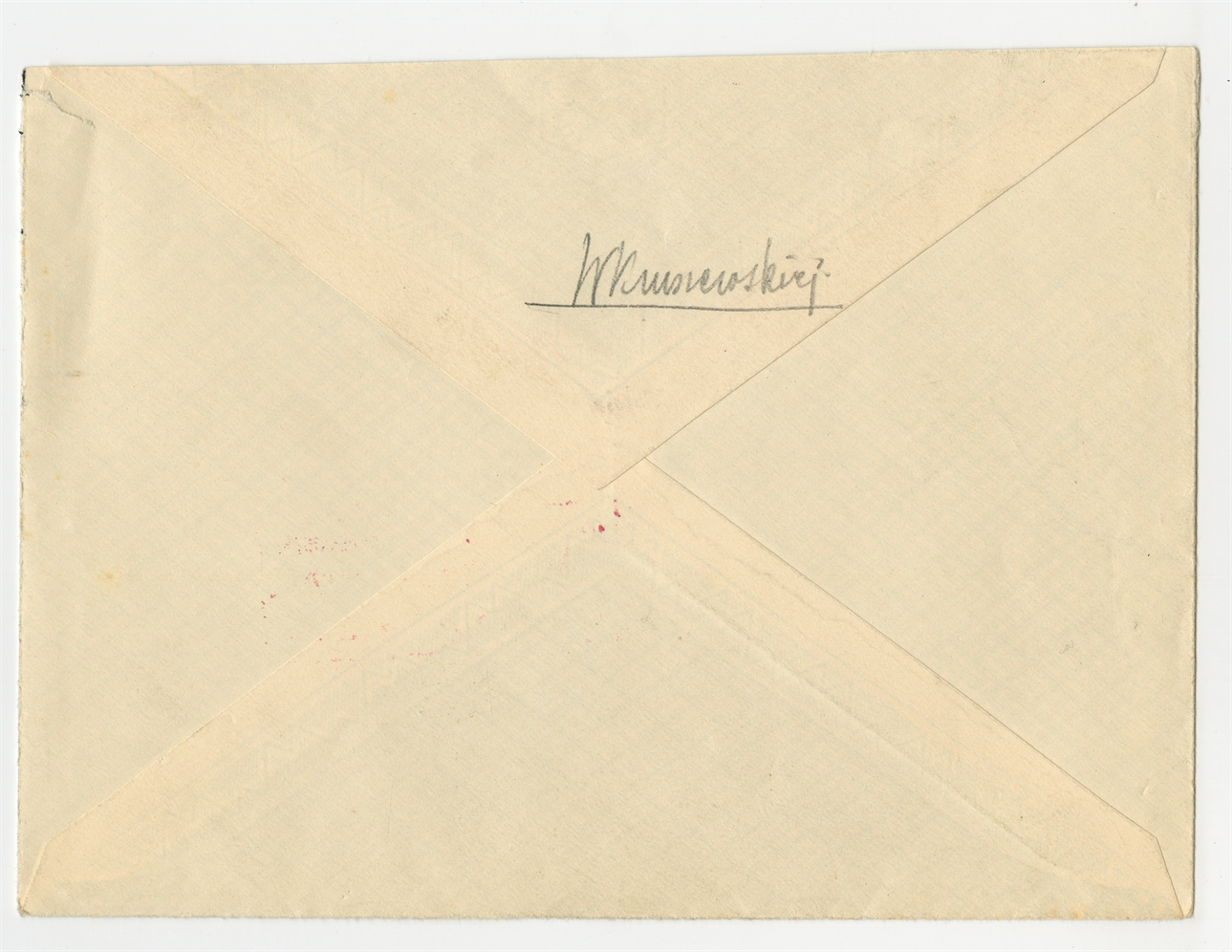 Koperta (rewers) z odręczną natatką: "W Kuszewskiej"