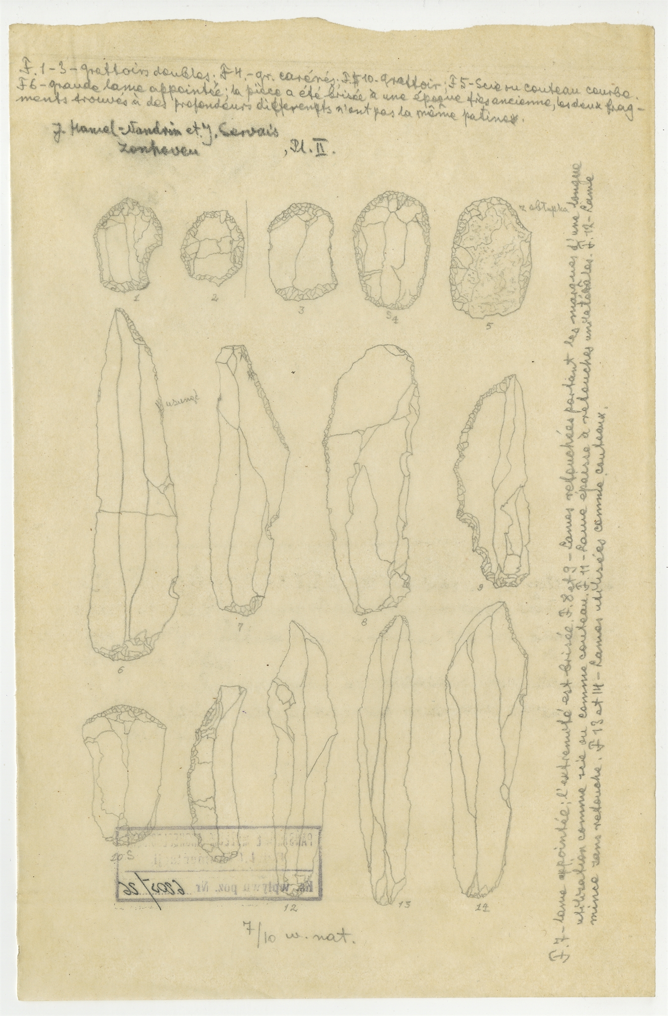 Kopie rysunków z publikacji J Hamal-Nadrin et J.Servais ze stanowiska Zonhoven. Tablica II