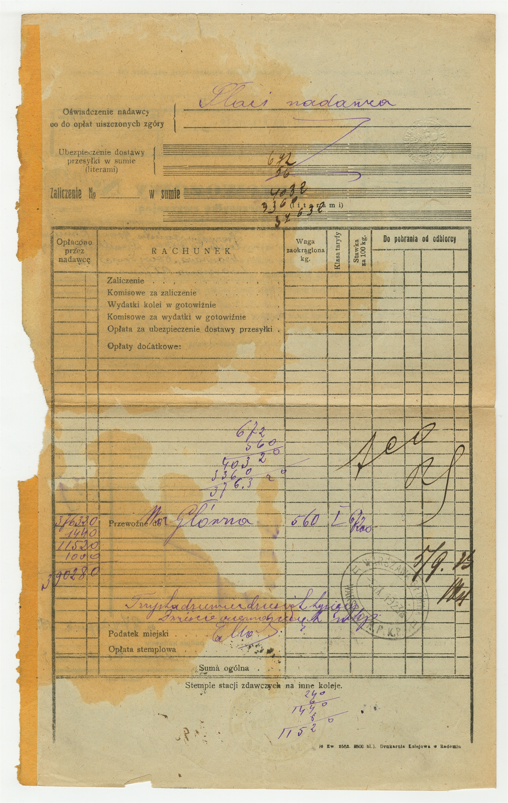 List przewozowy nr 10885 z dnia 27 VIII 1923 roku na przesyłkę z przedmiotami muzealnymi ze stacji Ostrowiec do Warszawy - strona 2