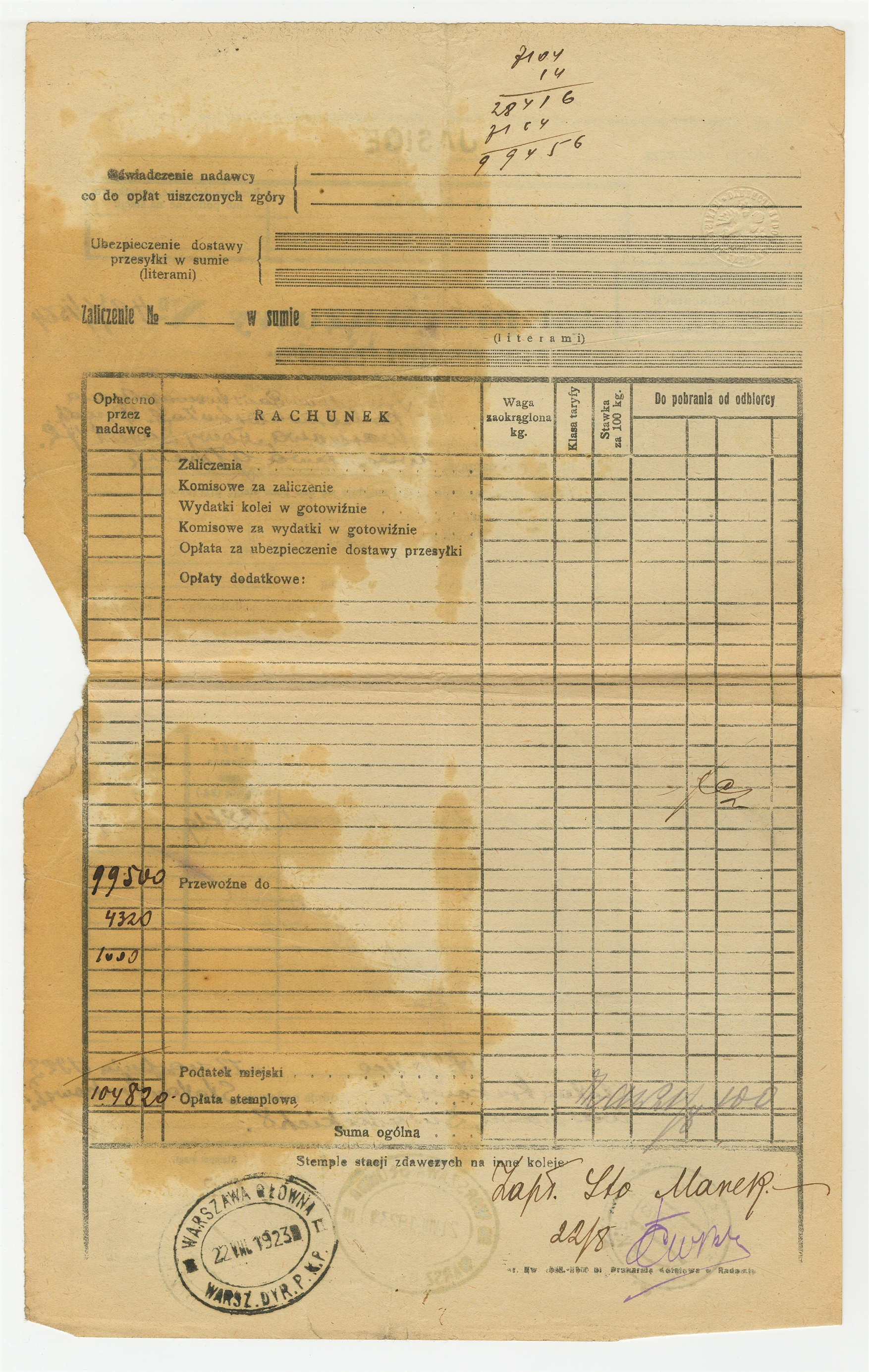 Element 2 - List przewozowy nr 497/1564 z dnia 13 VIII [19]23 roku na przesyłkę z przedmiotami muzealnymi ze stacji Jasice do Warszawy - strona 2