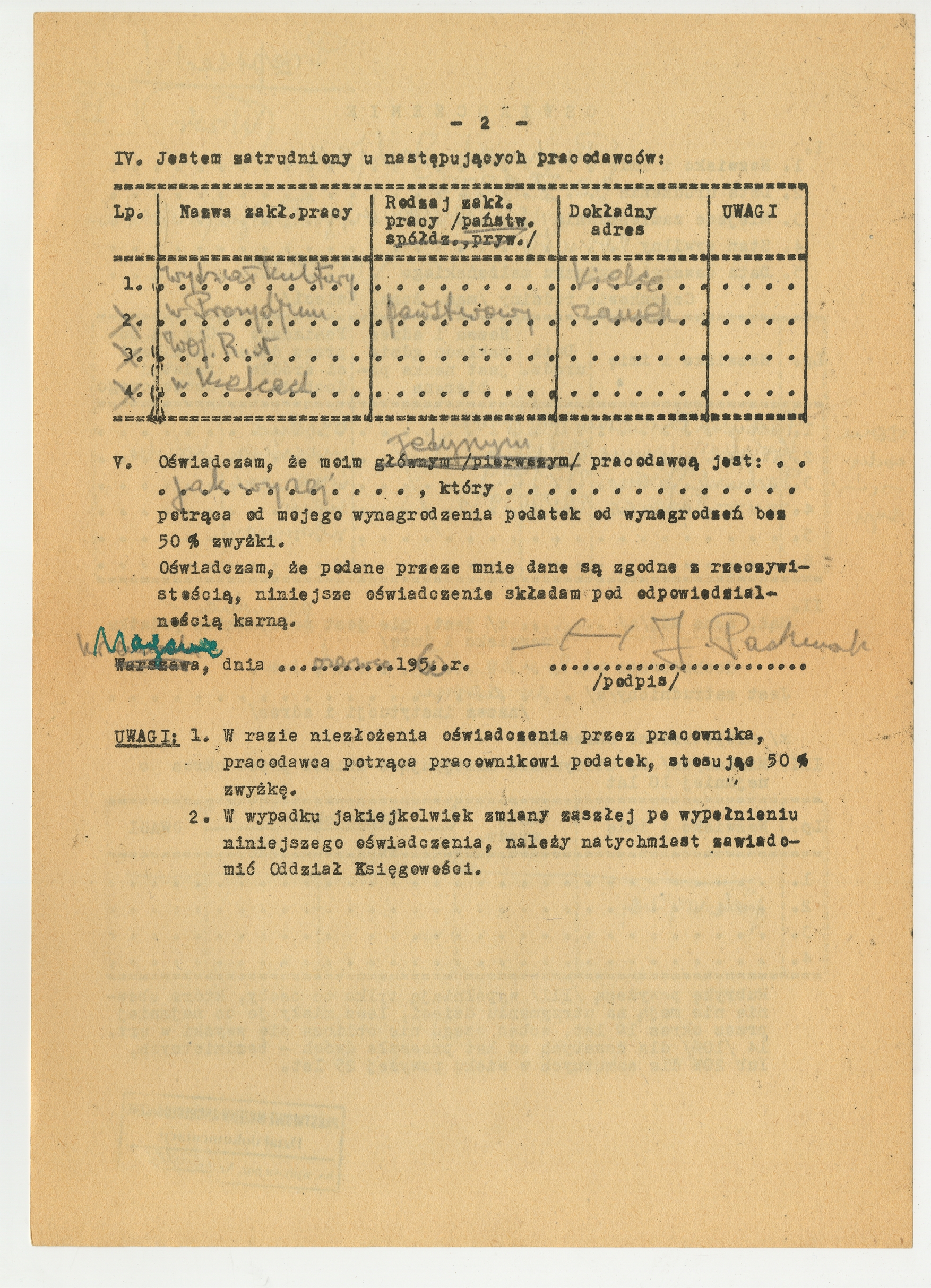 Maszynopis - brudnopis oświadczenia pracownika Juljana Pachniaka z marca 1960 roku na potrzeby pracodawcy - strona 2