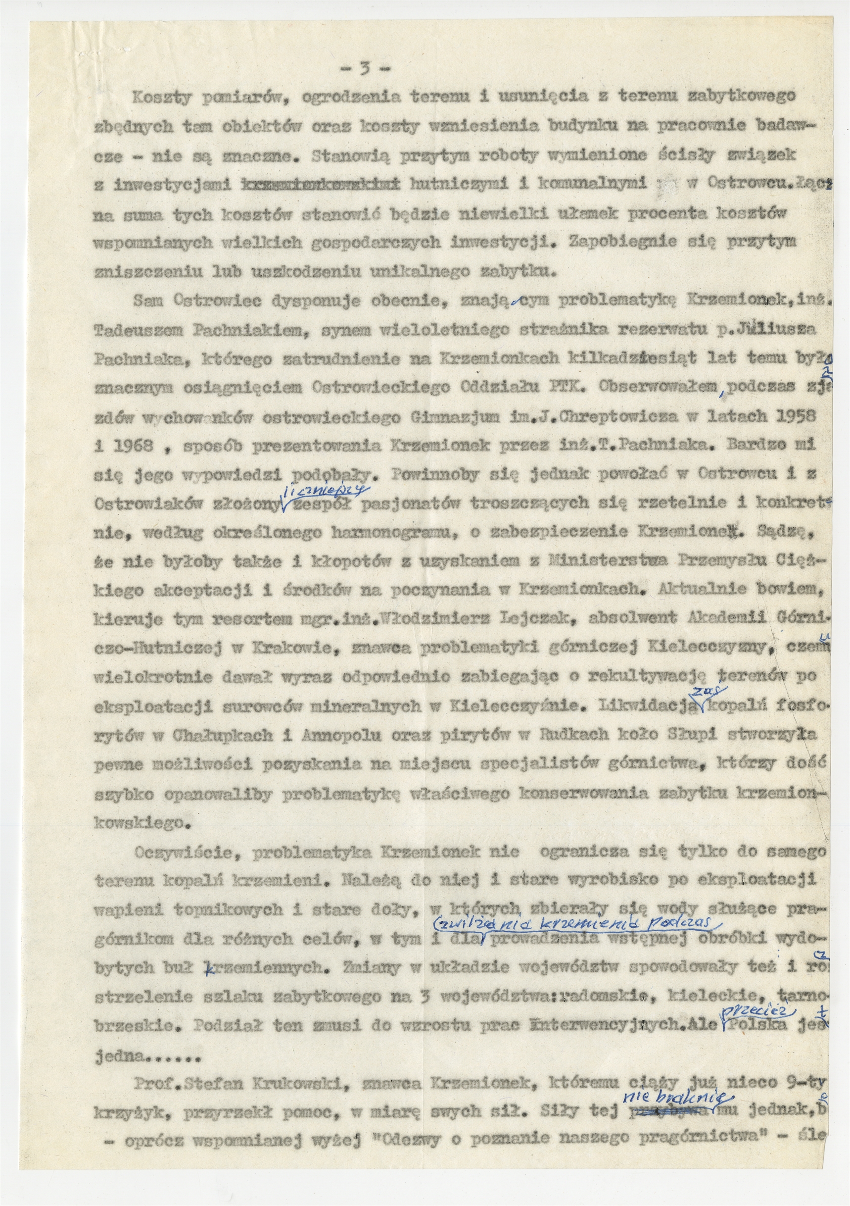 Maszynopis - kopia listu Jana Kosteckiego do redakcji miesięcznika "Przemiany" z dnia 5 VII 1975 roku w sprawie Krzemionek. Strona 3