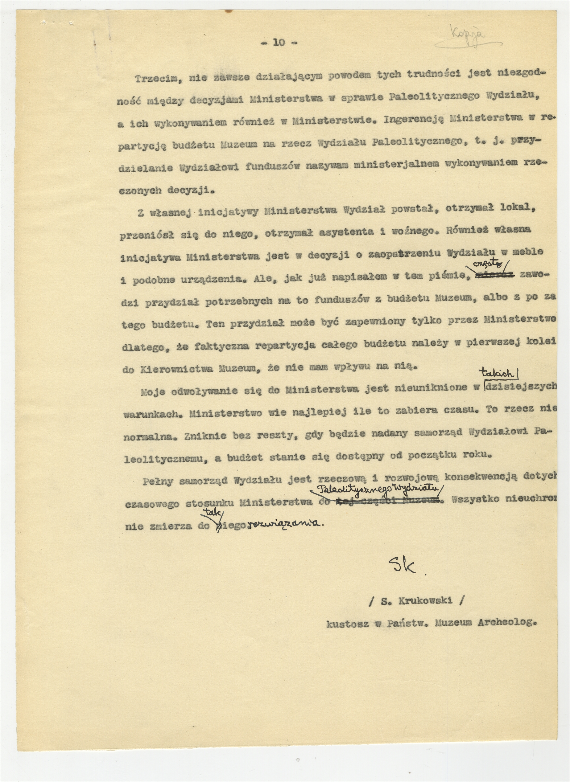 Maszynopis - kopia listu Stefana Krukowskiego do Dyrektora Departamentu Nauki i Szkół Wyższych w Ministerstwie W.R. i O.P z dnia 12 czerwca 1939 roku w sprawie zwrotu gotówki. Strona 10
