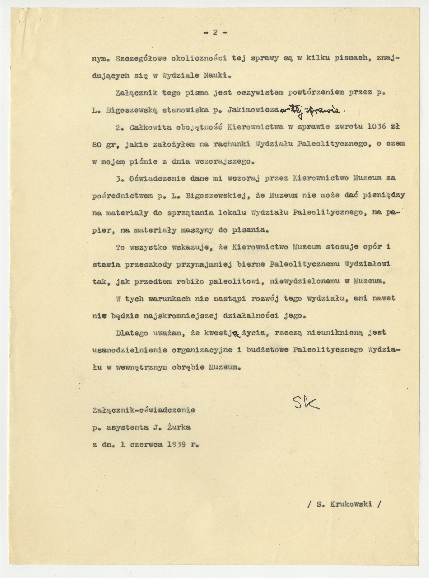 Maszynopis - kopia listu Stefana Krukowskiego do Naczelnika Wydziału Nauki Ministerstwa W.R. i O.P. z dnia 2 czerwca 1939 roku. Strona 2