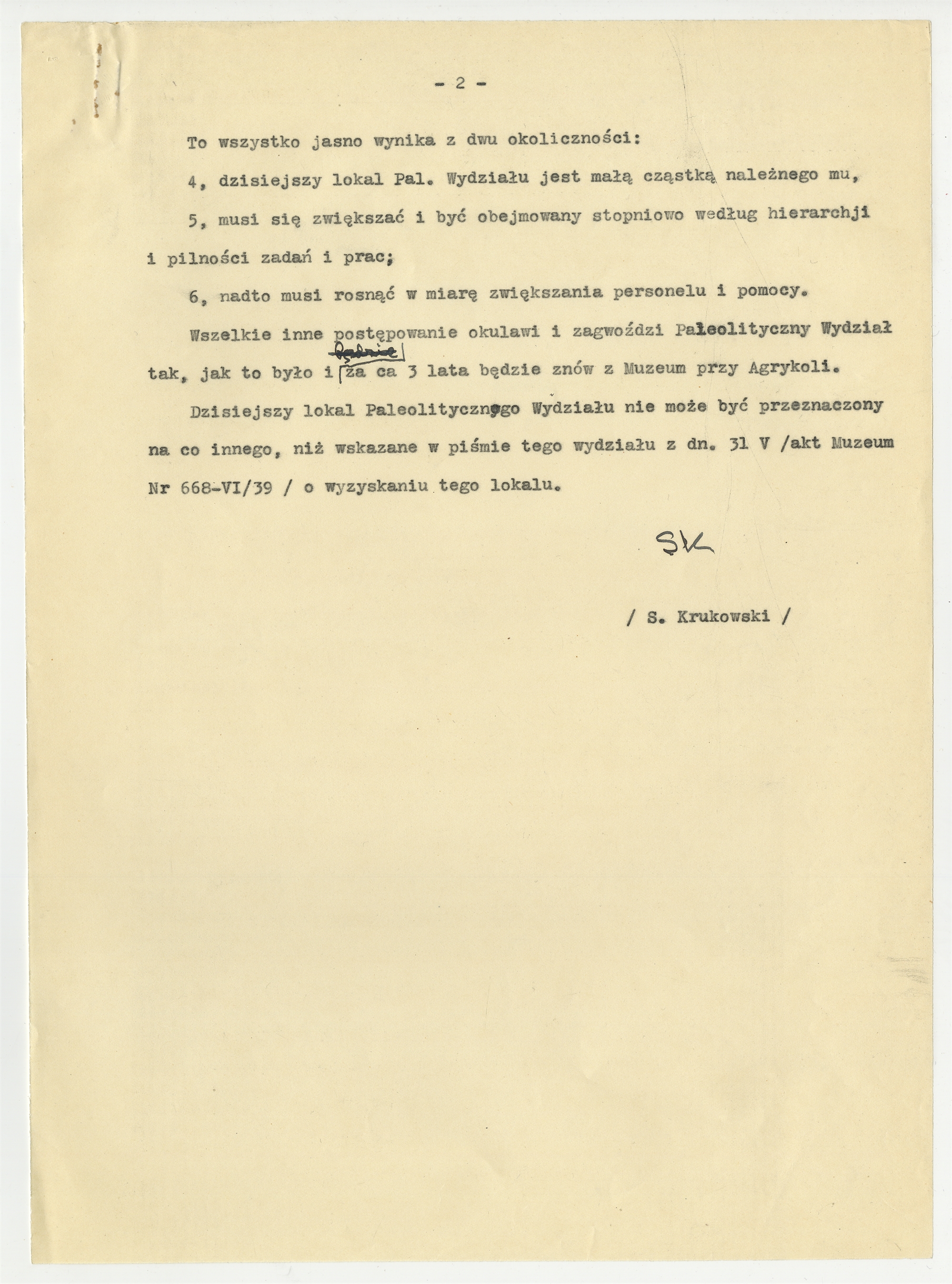 Maszynopis - kopia listu Stefana Krukowskiego do Naczelnika Wydziału Nauki Ministerstwa W.R. i O.P. z dnia 4 czerwca 1939 roku w sprawie wystawy paleolitu. Strona 2