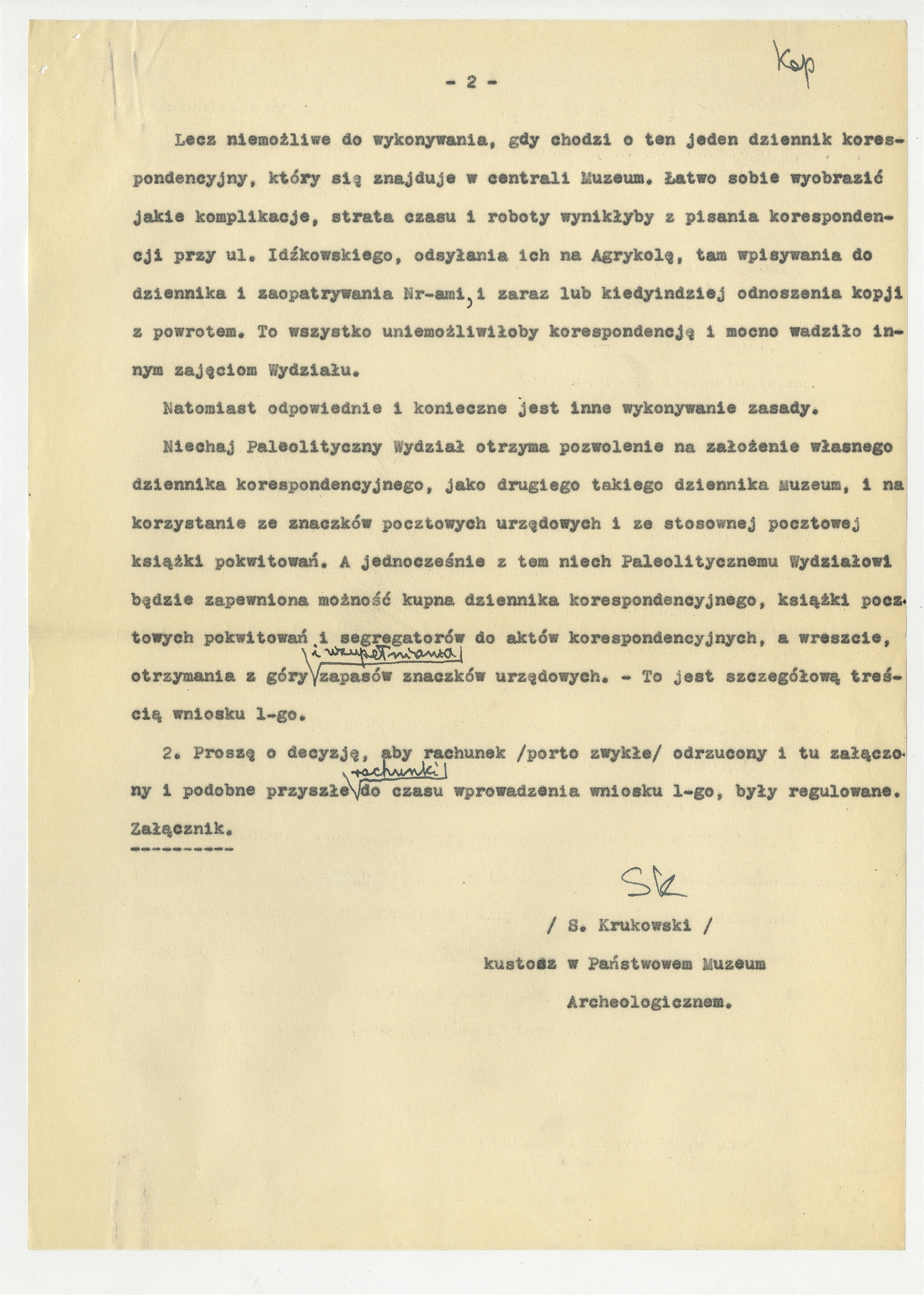 Maszynopis - kopia listu Stefana Krukowskiego do Naczelnika Wydziału Nauki w Ministerstwie W.R i O.P. z dnia 25 lipca 1939 roku. Strona 2