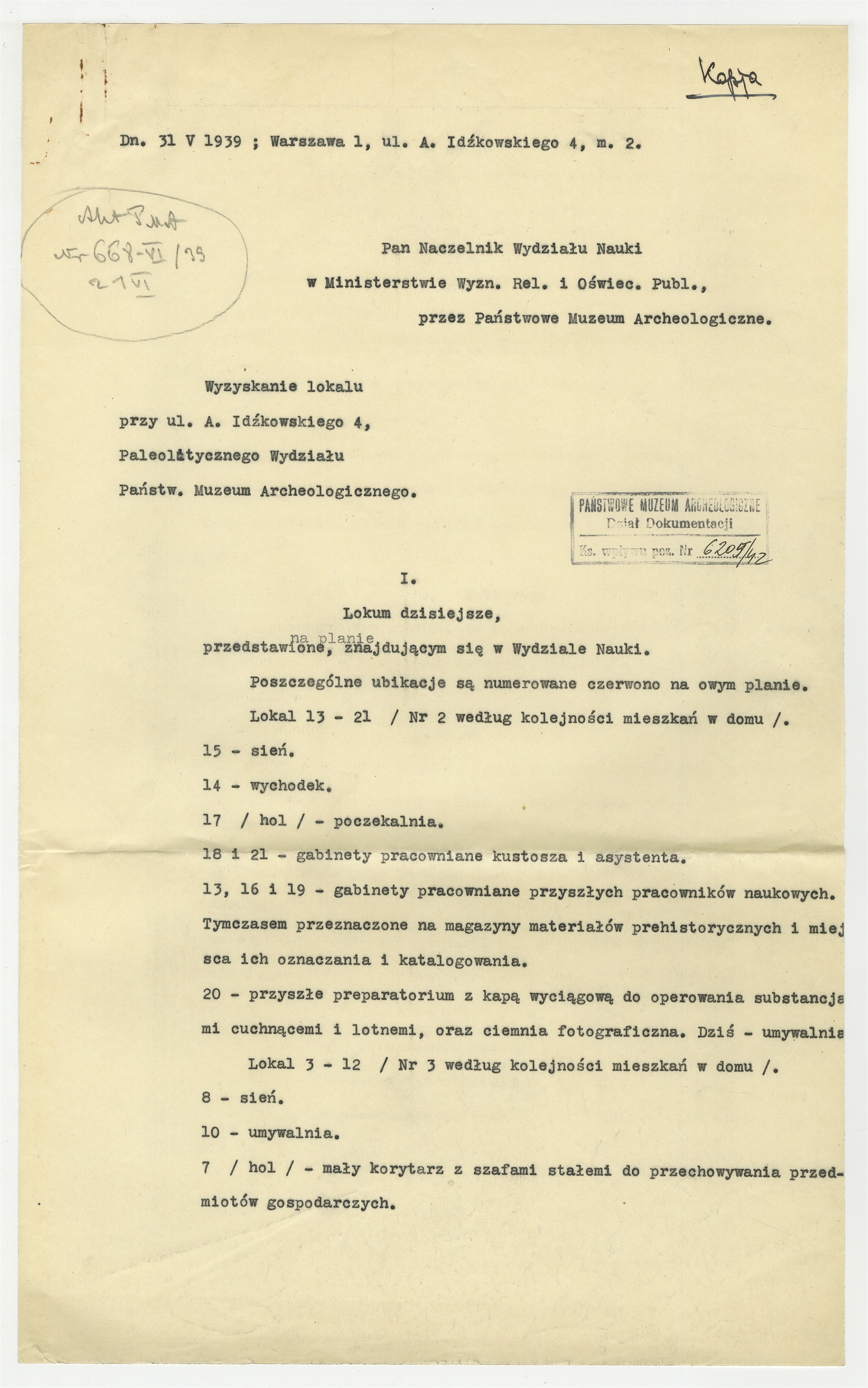 Maszynopis - kopia listu Stefana Krukowskiego z dnia 31 V 1939 roku do Naczelnika Wydziału Nauki Ministerstwa W.R. i O.P. Strona 1