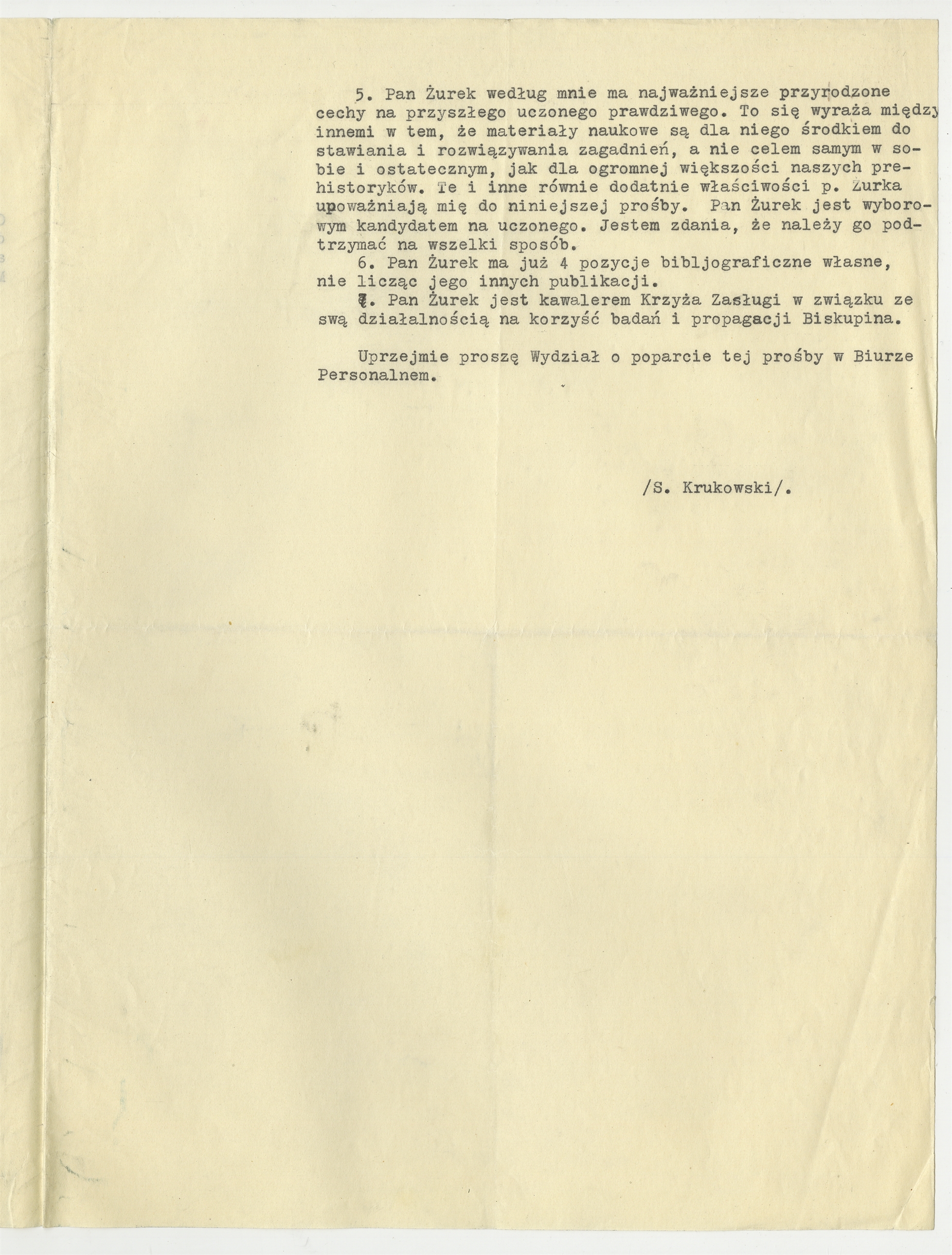 Maszynopis - kopia listu Stefana Krukowskiego z dnia 4 kwietnia do Wydziału Nauki w Ministerstwie W.R i O.P. dotyczący wysokości pensji Jana Żurka (cd)