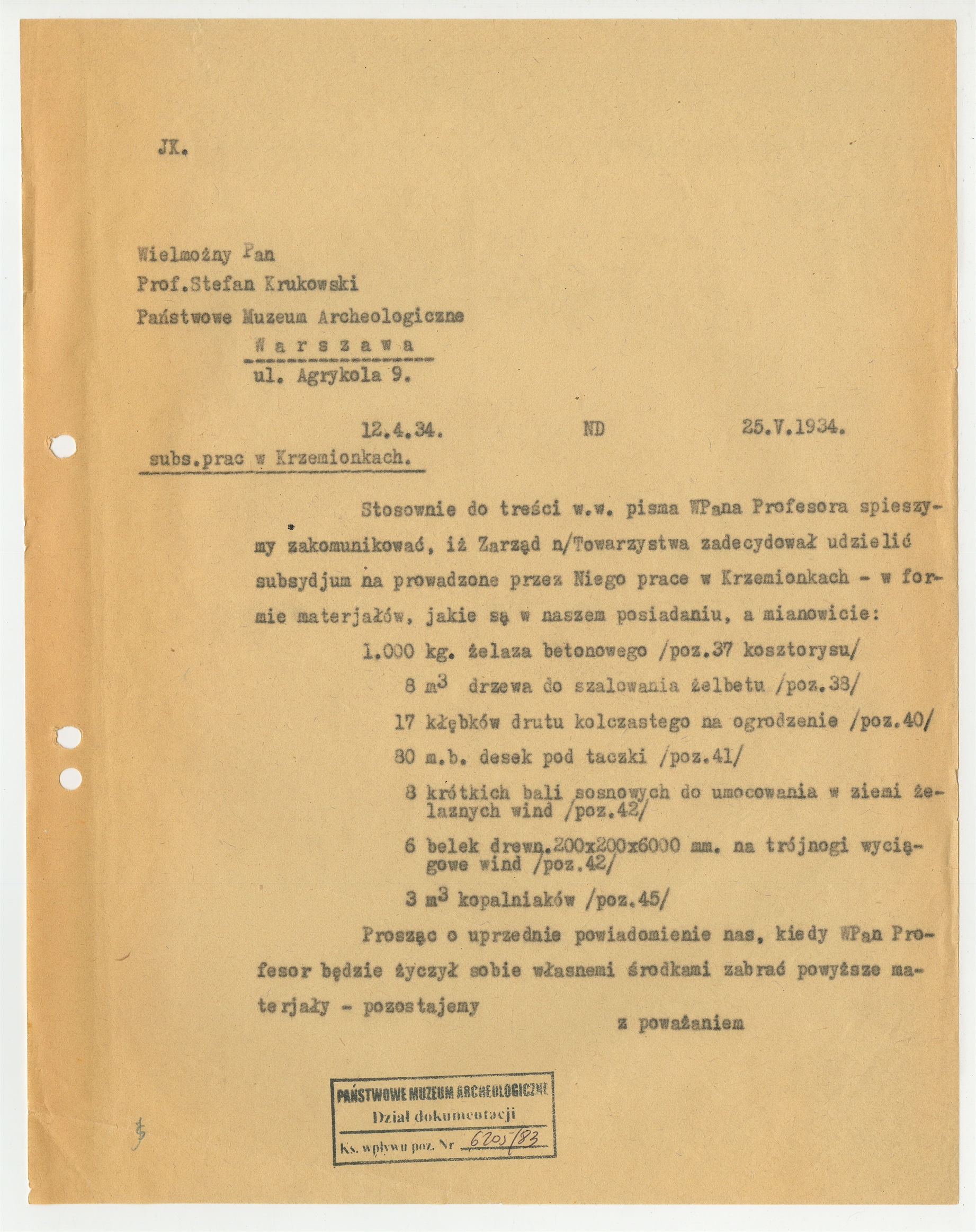 Maszynopis - kopia listu Zarządu Towarzystwa Starachowickich Zakładów Górniczych do Stefana Krukowskiego z dnia 25 V 1934 roku