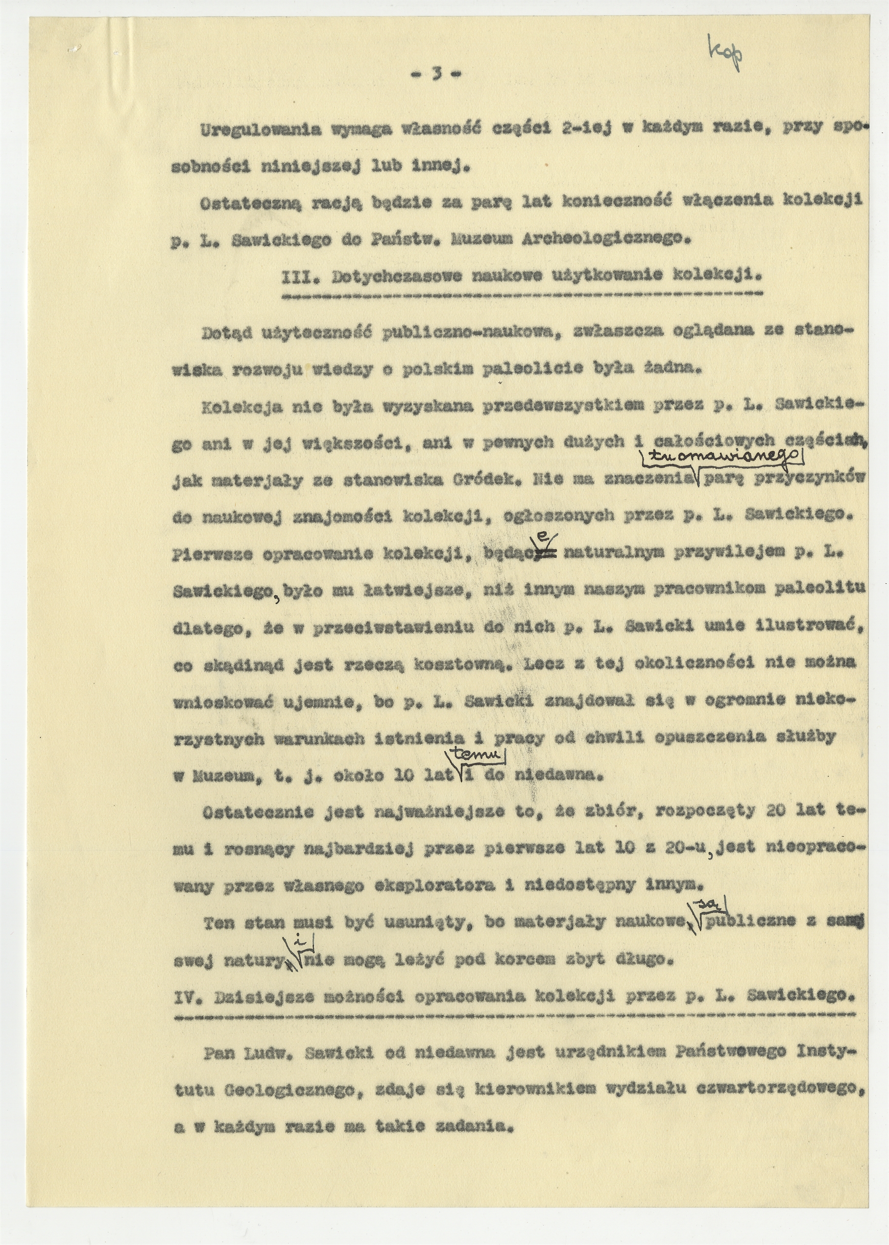 Maszynopis - kopia pisma Stefana Krukowskiego z dnia 13 lipca 1939 roku do Naczelnika Wydziału Nauki Ministerstwa W.R. i O.P. w sprawie zbioru L. Sawickego. Strona 3