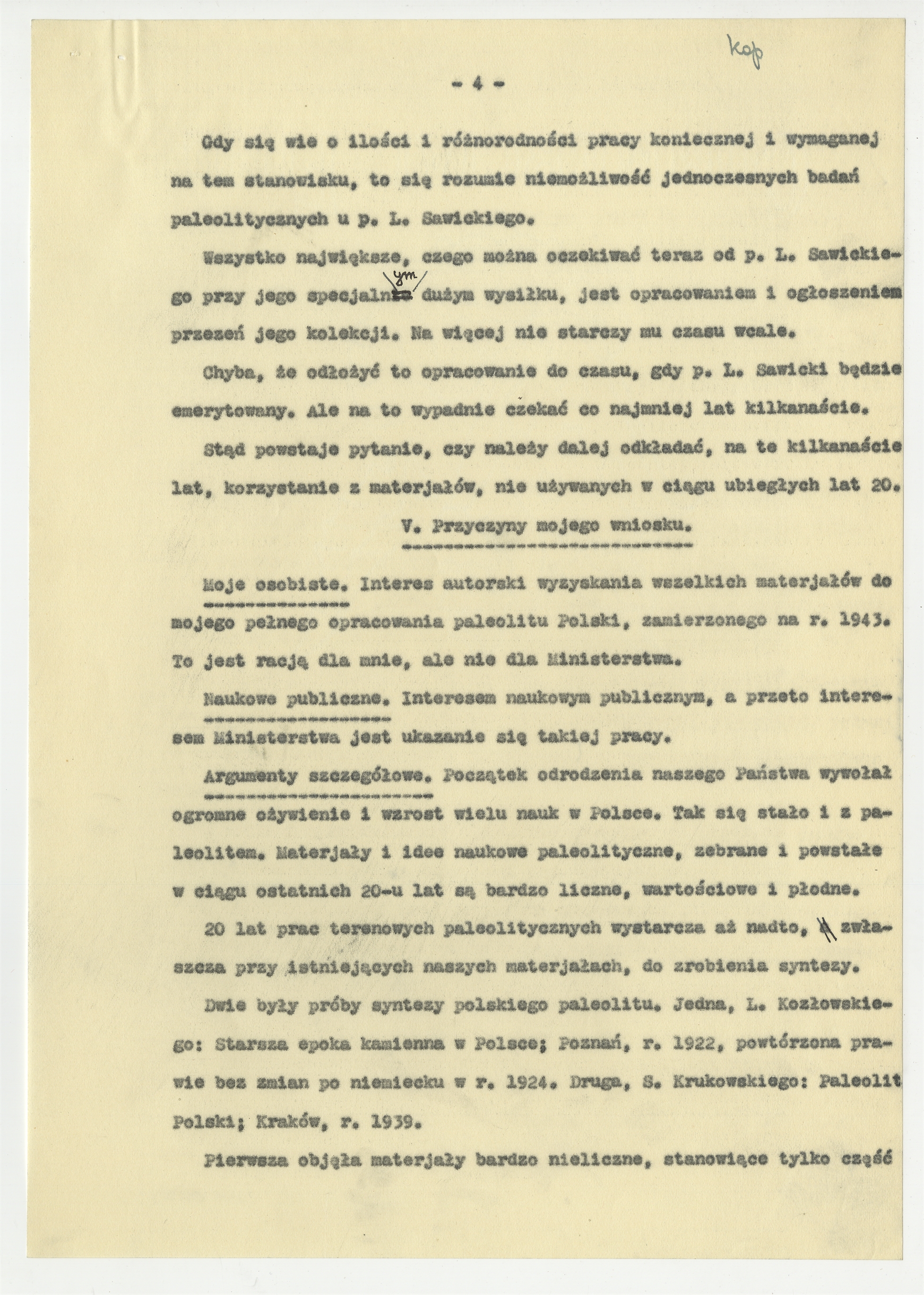 Maszynopis - kopia pisma Stefana Krukowskiego z dnia 13 lipca 1939 roku do Naczelnika Wydziału Nauki Ministerstwa W.R. i O.P. w sprawie zbioru L. Sawickego. Strona 4