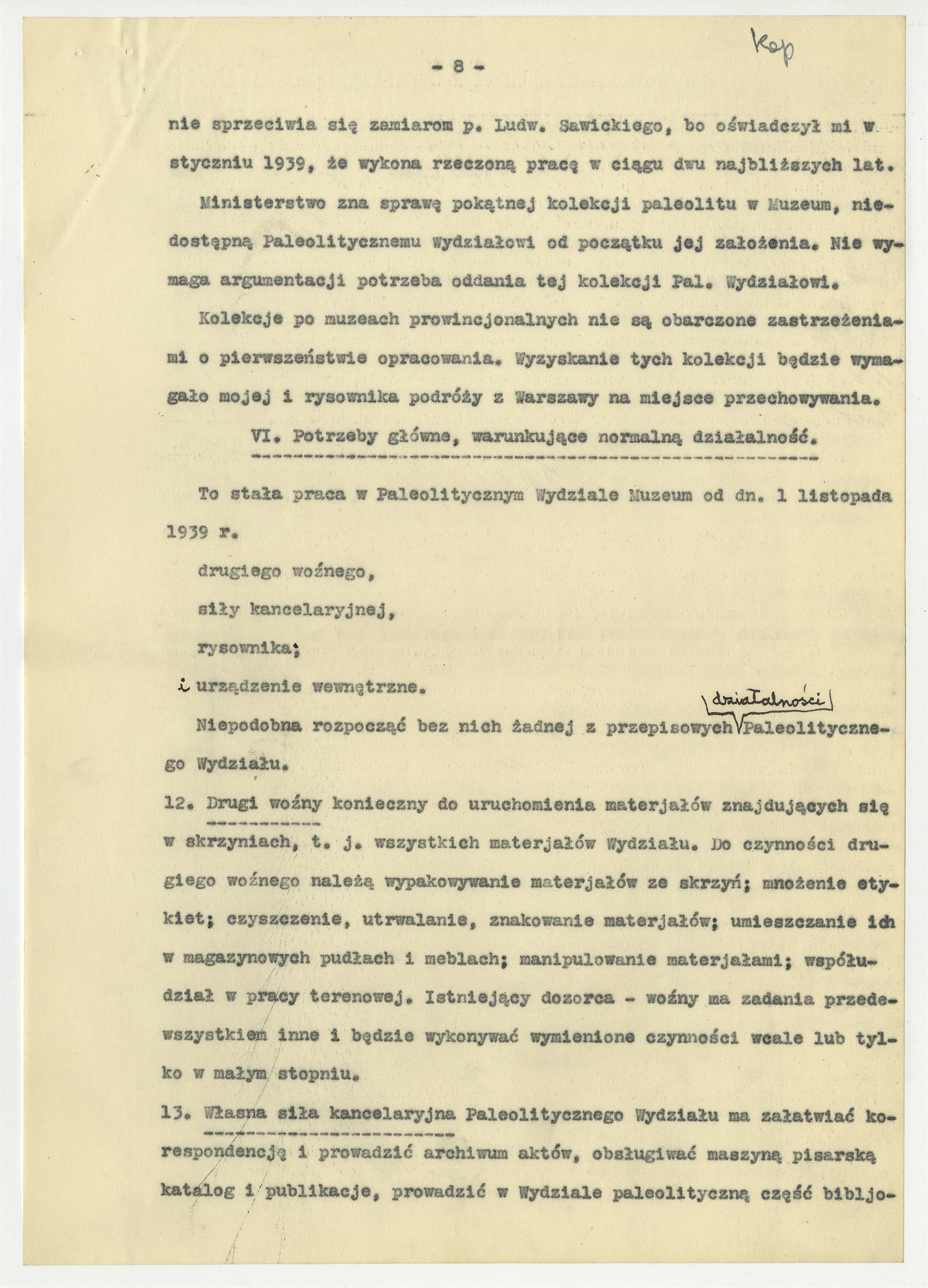 Maszynopis - kopia pisma Stefana Krukowskiego z dnia 7 lipca 1939 roku do Naczelnika Wydziału Nauki Ministerstwa W.R. i O.P. z planem działalności i preliminażem budżetowym na r. 1939/1940. Strona 8