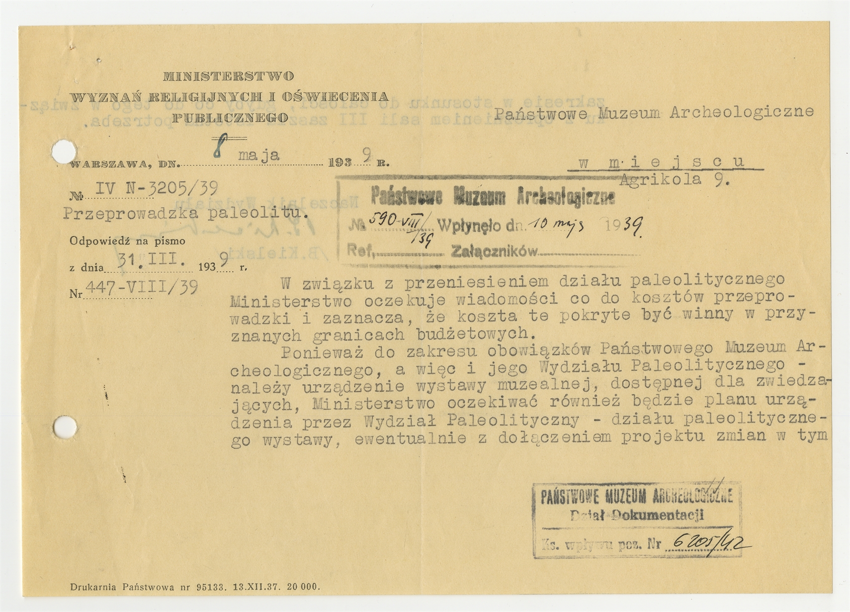 Maszynopis - list B. Kielskiego do Państwowego Muzeum Archeologicznego w Warszawie z dnia 8 maja 1939 roku
