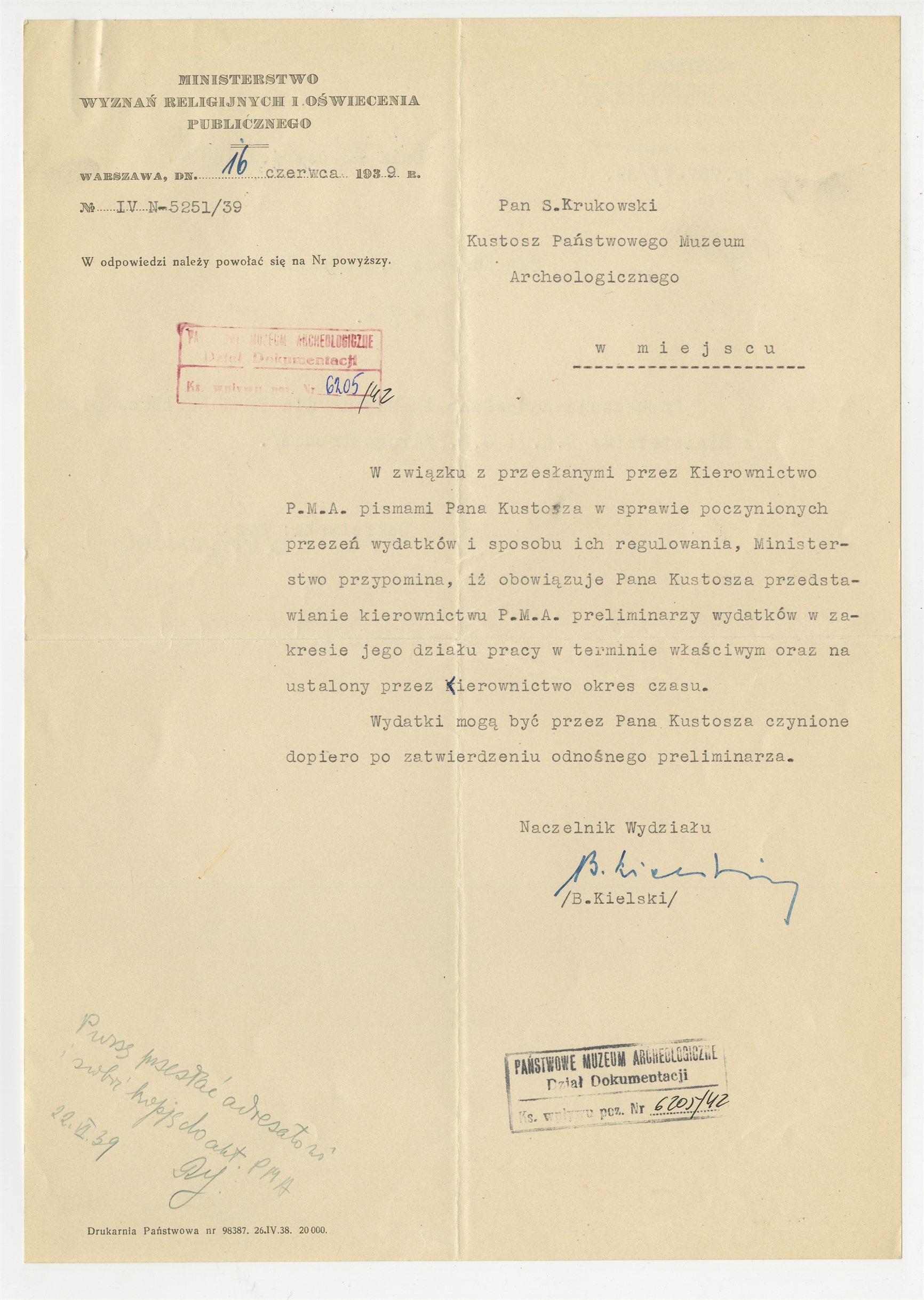 Maszynopis - list B. Kielskiego do Stefana Krukowskiego z dnia 16 czerwca 1939 roku