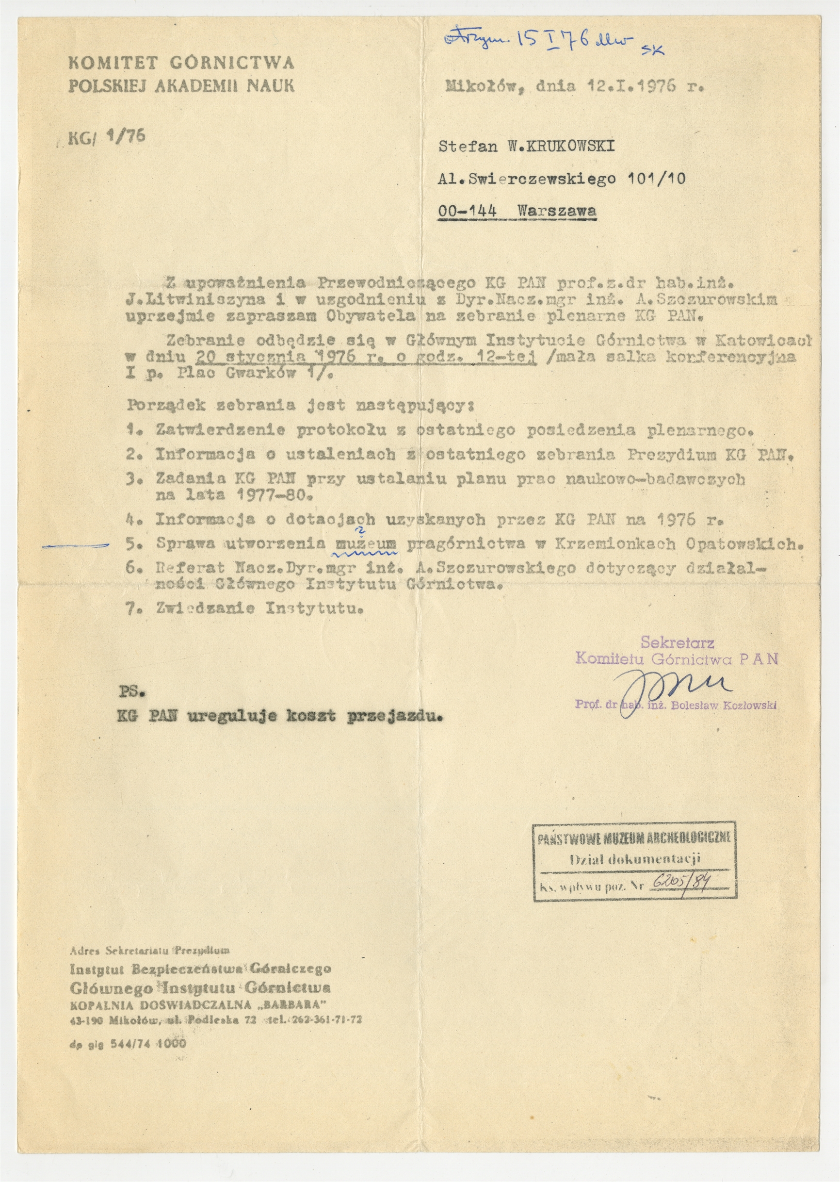 Maszynopis - list Bolesława Kozłowskiego do Stefana Krukowskiego z dnia 12 I 1976 roku