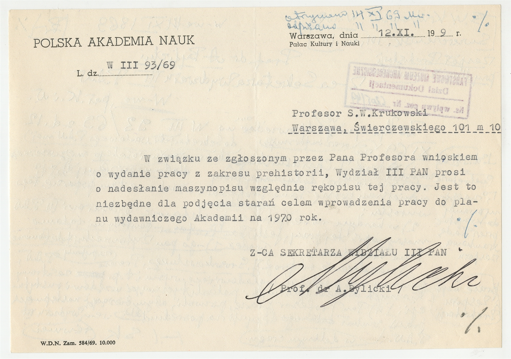 Maszynopis - list A. Bylickiego do Stefana Krukowskiego z dn. 12 XI 1969 r.