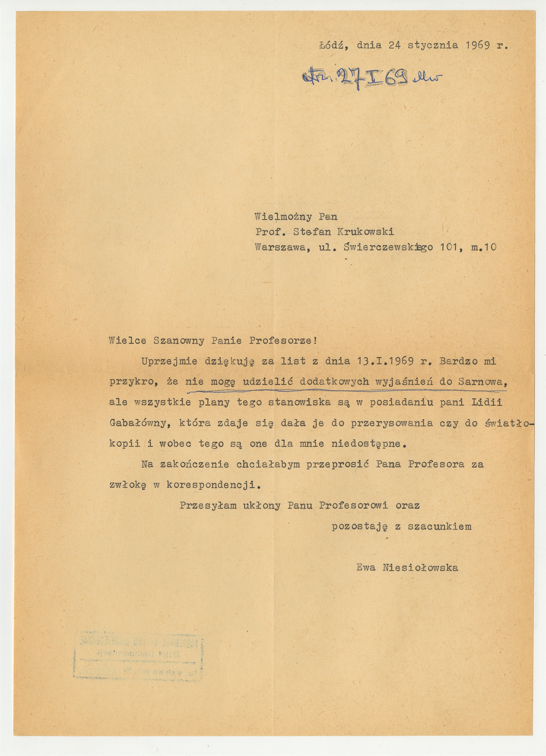 Maszynopis - list Ewy Niesiołowskiej do Stefana Krukowskiego z dnia 24 stycznia 1969 roku