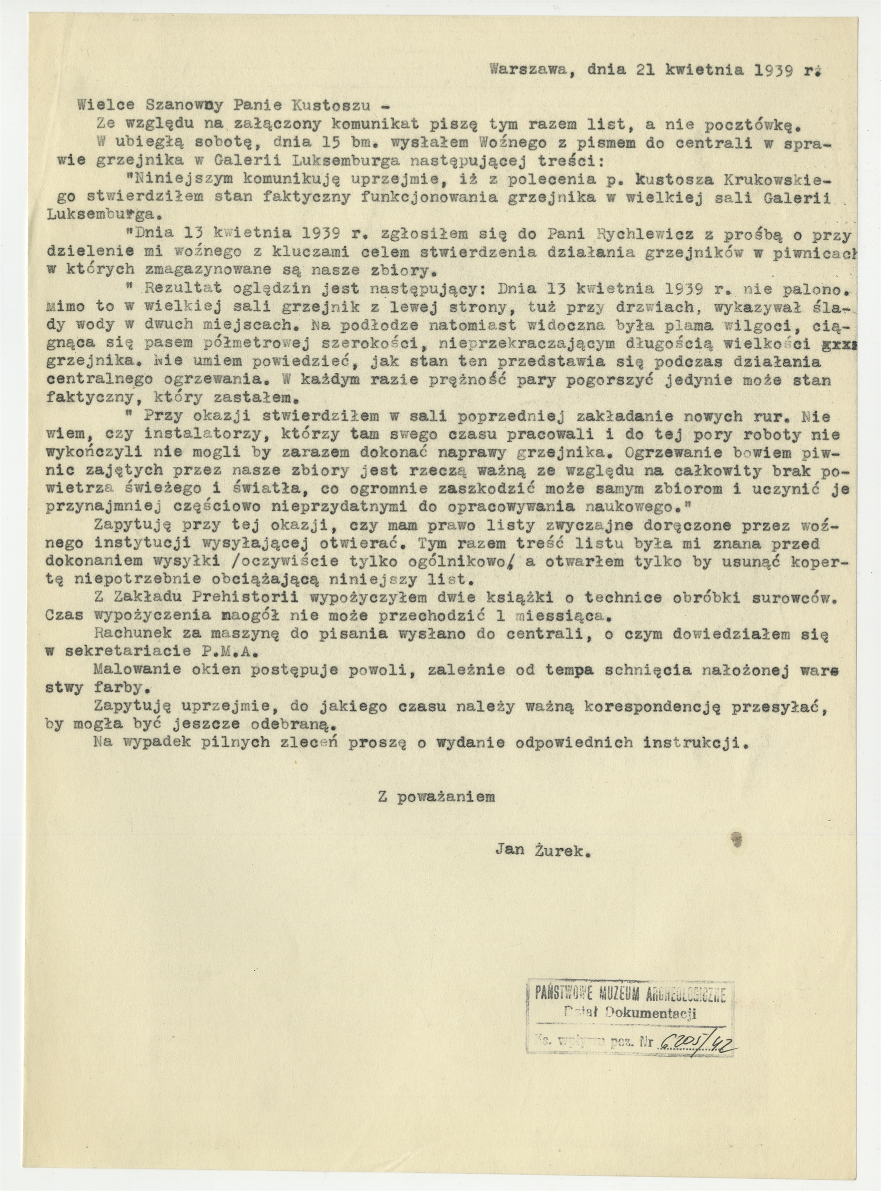 Maszynopis - list Jana Żurka do Stefana Krukowskiego z dnia 21 kwietnia 1939 roku