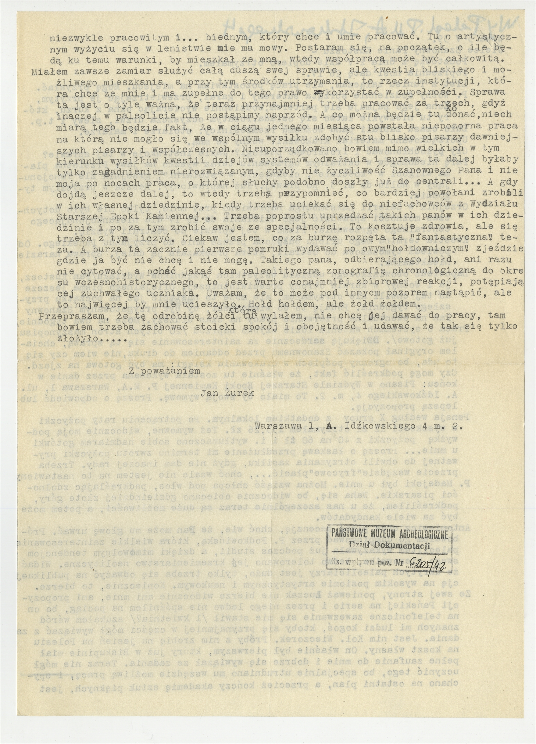 Maszynopis - list Jana Żurka do Stefana Krukowskiego z dnia 5 V [19]39 roku