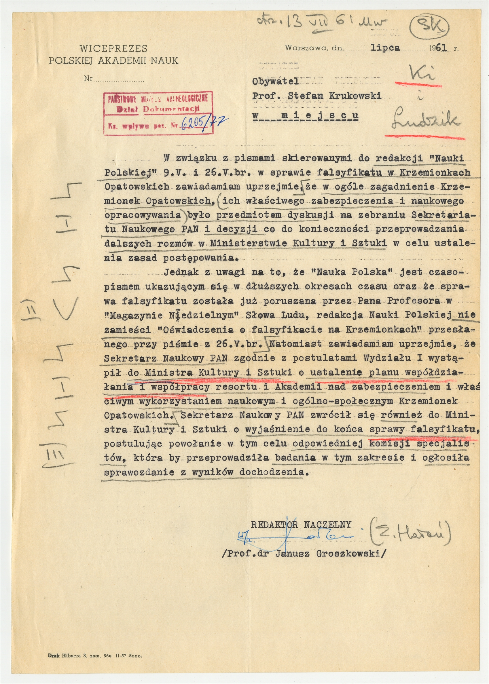 Maszynopis - list Janusza Groszkowskiego do Stefana Krukowskiego z dnia [brak] lipca 1961 roku