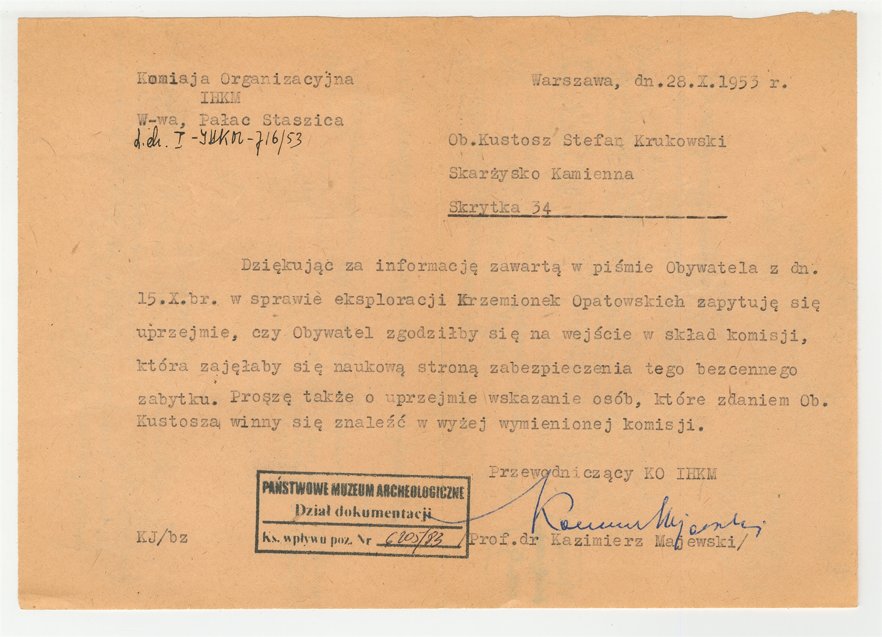 Maszynopis - list Kazimierza Majewskiego do Stefana Krukowskiego z dnia 28 X 1953 roku