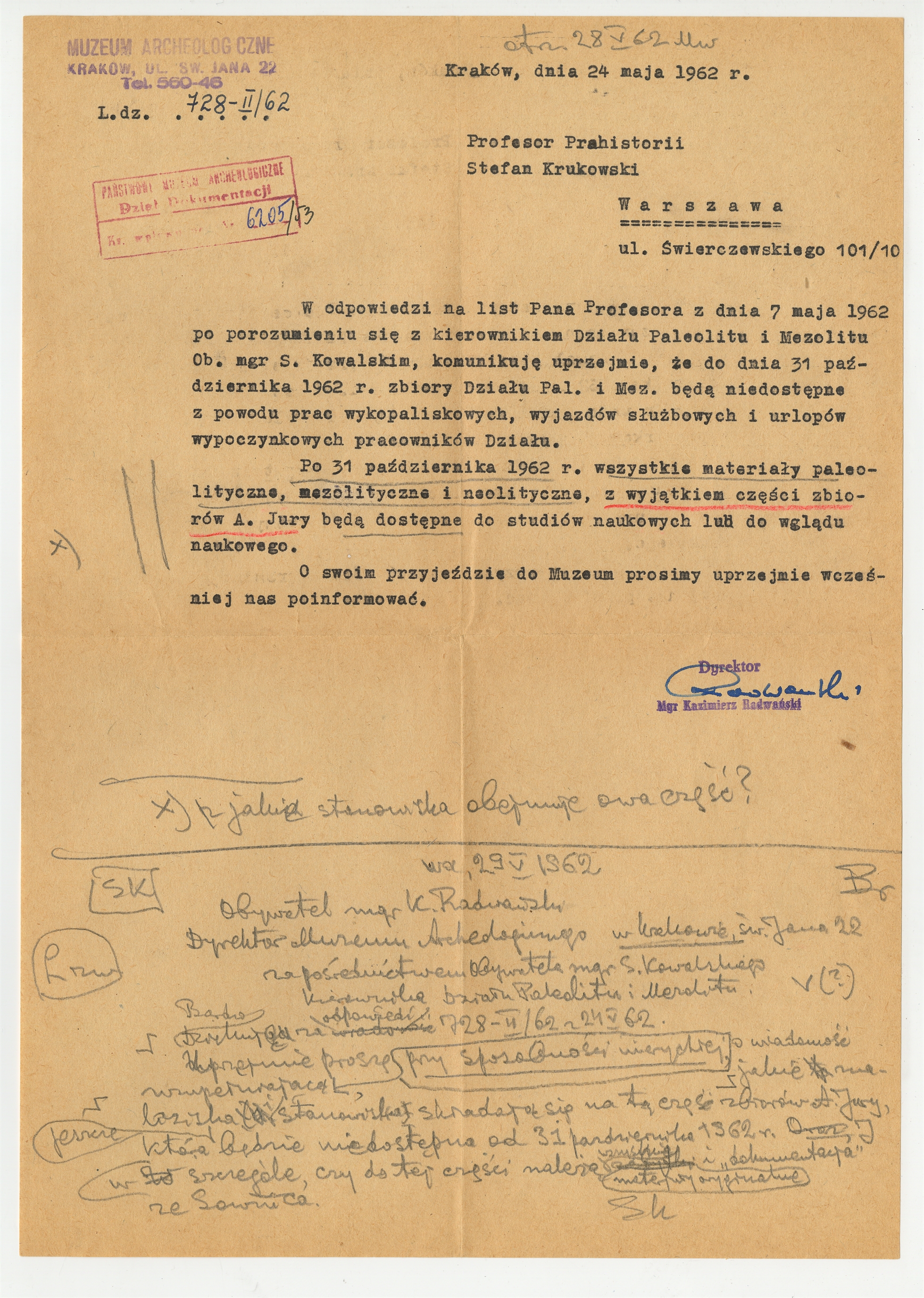 Maszynopis - list Kazimierza Radwańskiego do Stefana Krukowskiego z dnia 24 maja 1962 roku. Rękopis - brudnopis odpowiedzi Stefana Krukowskiego z dnia 29 V 1962 roku na list