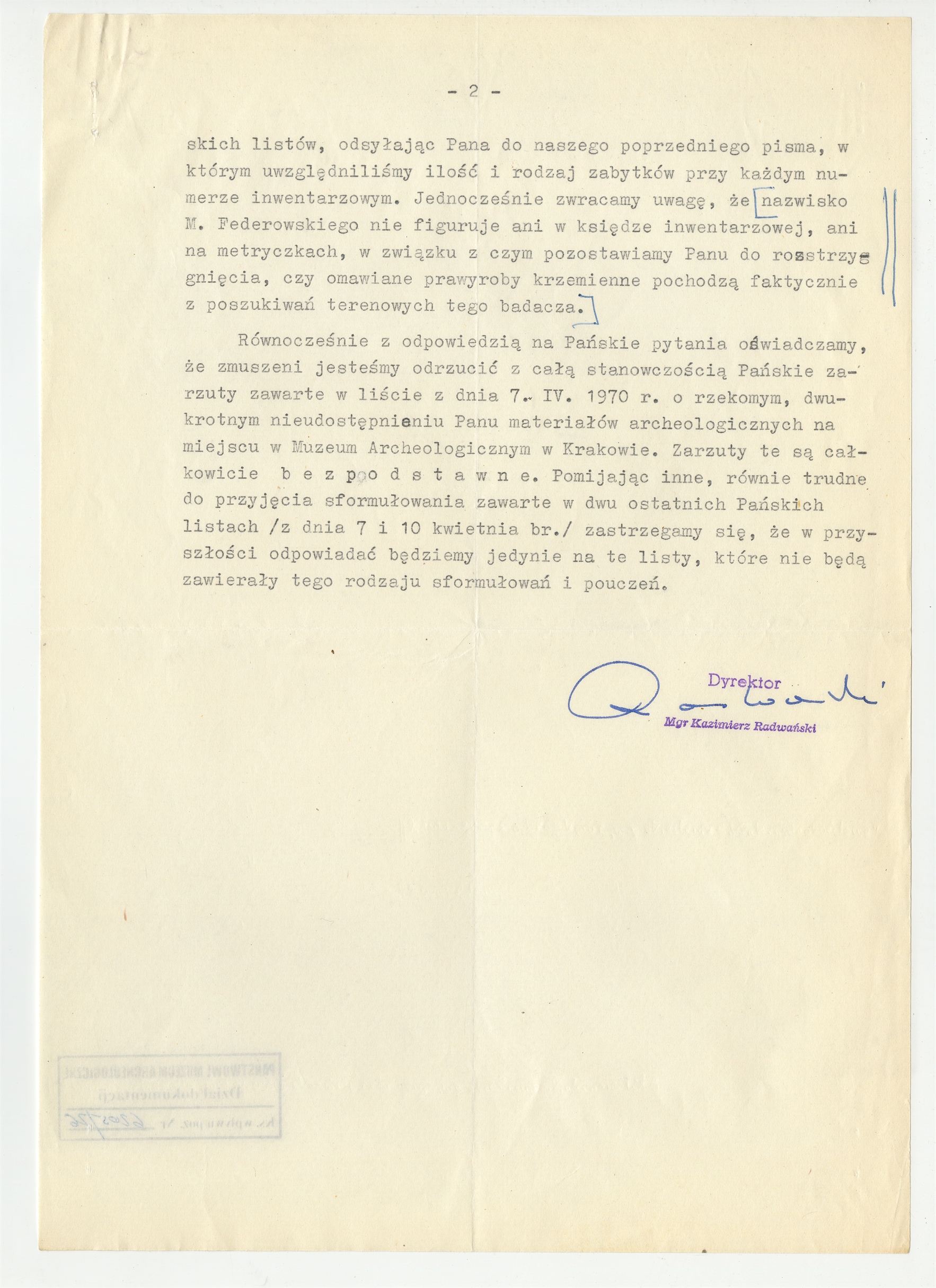 Maszynopis - list Kazimierza Radwańskiego do Stefana Krukowskiego z dnia 29 kwietnia 1970 roku - strona 2