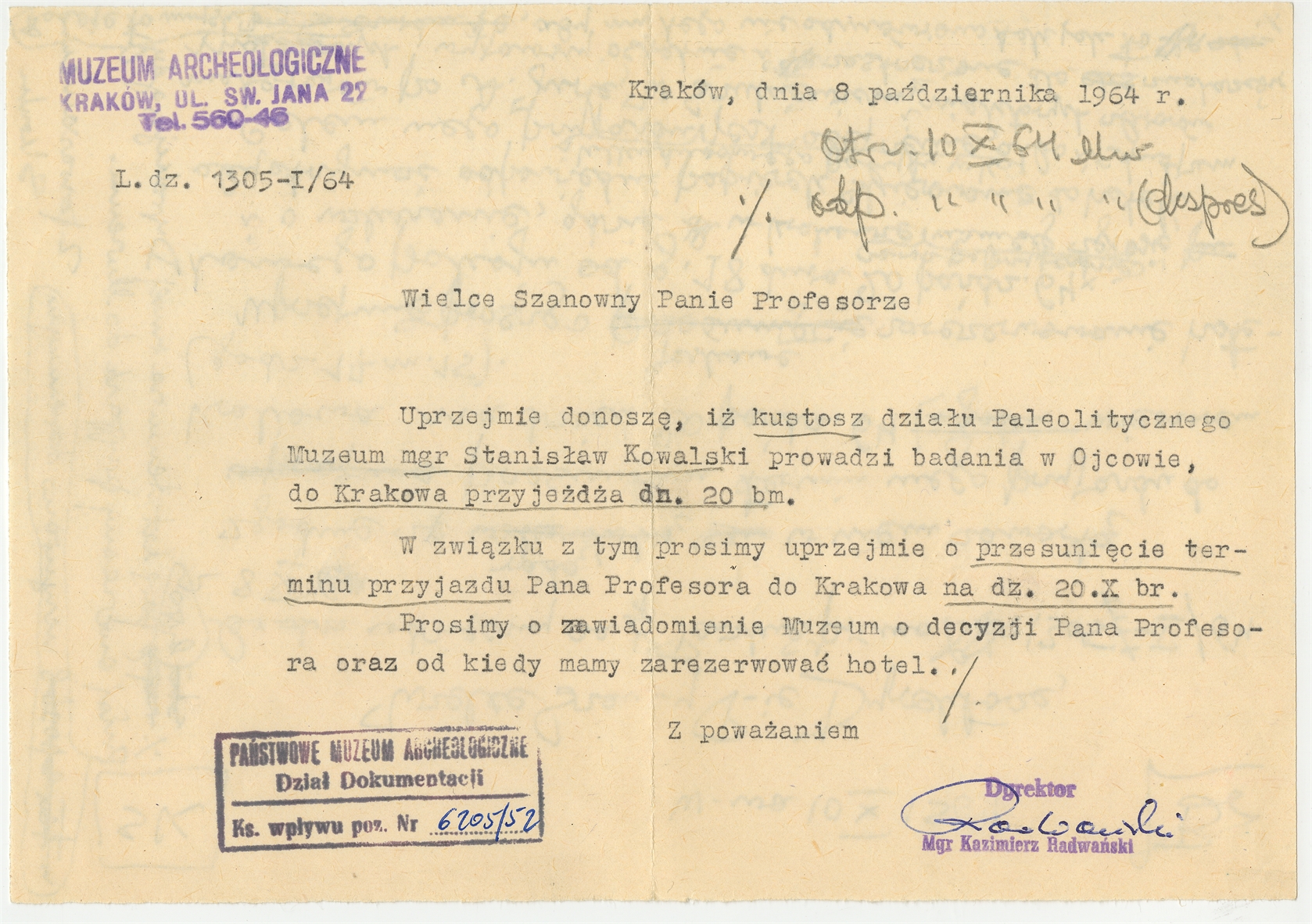 Maszynopis - list Kazimierza Radwańskiego  dyrektora Muzeum Archeologicznego w Krakowie do Stefana Krukowskiego z dnia 8 października 1964 roku