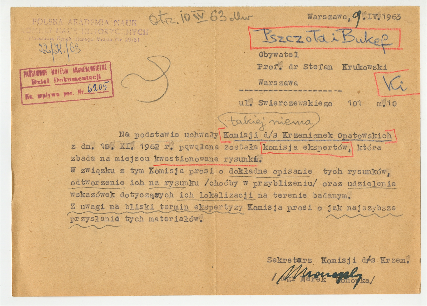 Maszynopis - list Komisji ds. Krzemionek Opatowskich PAN do Stefana Krukowskiego z dnia 9 IV 1963 roku