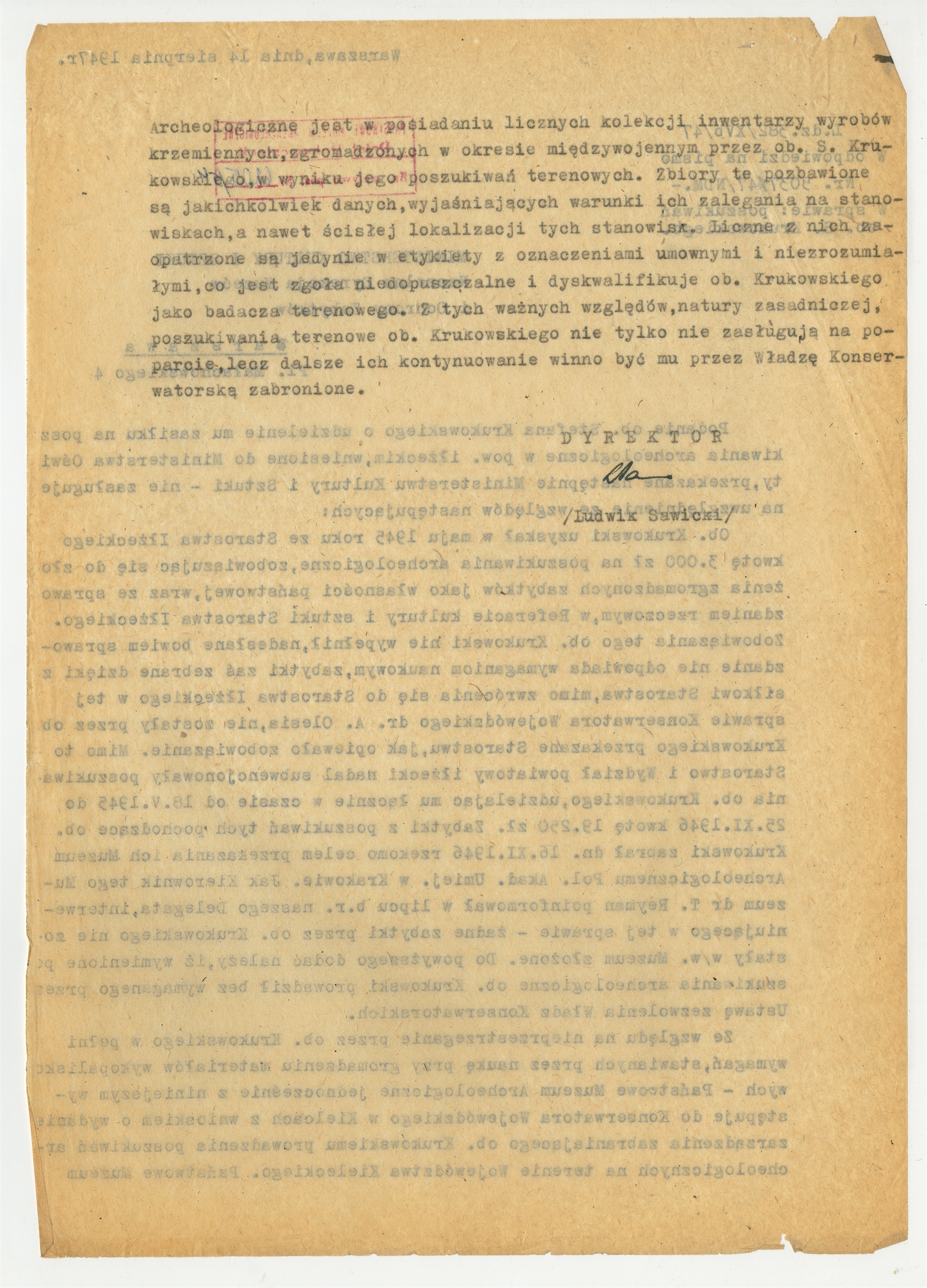 Maszynopis - list Ludwika Sawickiego do Ministerstwa Kultury i Sztuki z dnia 14 sierpnia 1947 roku w sprawie podania S. Krukowskiego (cd)
