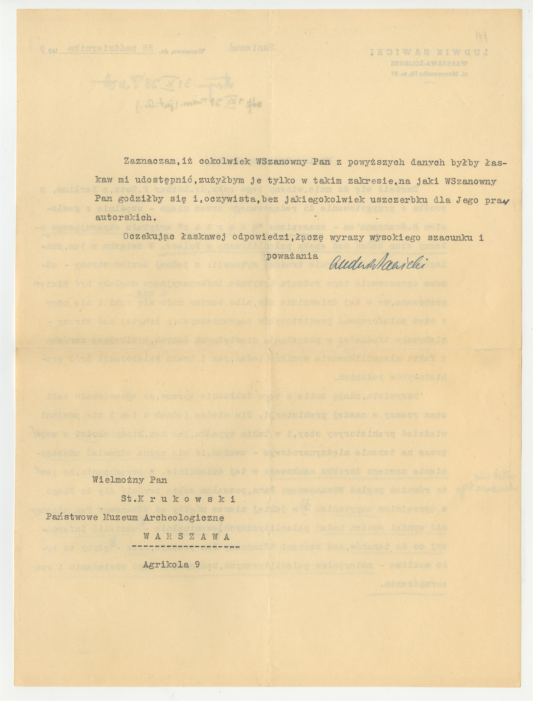 Maszynopis - list Ludwika Sawickiego do Stefana Krukowskiego z dnia 28 października 1938 roku (cd)